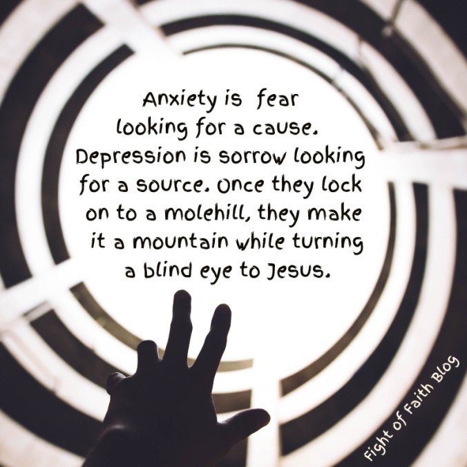 Anxiety is fear looking for a cause. Depression is sorrow looking for a source. Once they lock on to a molehill, they make it a mountain while turning a blind eye to Jesus. Oh, and it can be debilitating.